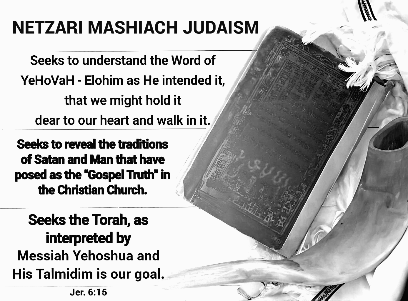 Through the teaching of Netzari Judaism and our online outreach ministry, we are devoted to helping others restore talmidut (discipleship) through the power of His Ruach (Spirit) and uniting the Tanakh, the Renewed Covenant, and Apostolic writings as Echad (One) revelation, which is His TORAH (His Instructions)—preparing hearts for the coming Millennial Kingdom of Mashiach.