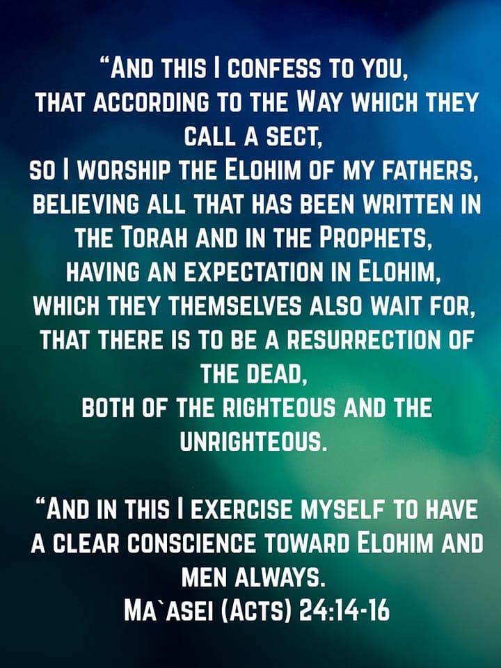 And this I confess to you, that according to the Way which they call a sect, so I worship the Elohim of my fathers, believing all that has been written in the Torah and in the Prophets, (Act 24:14)